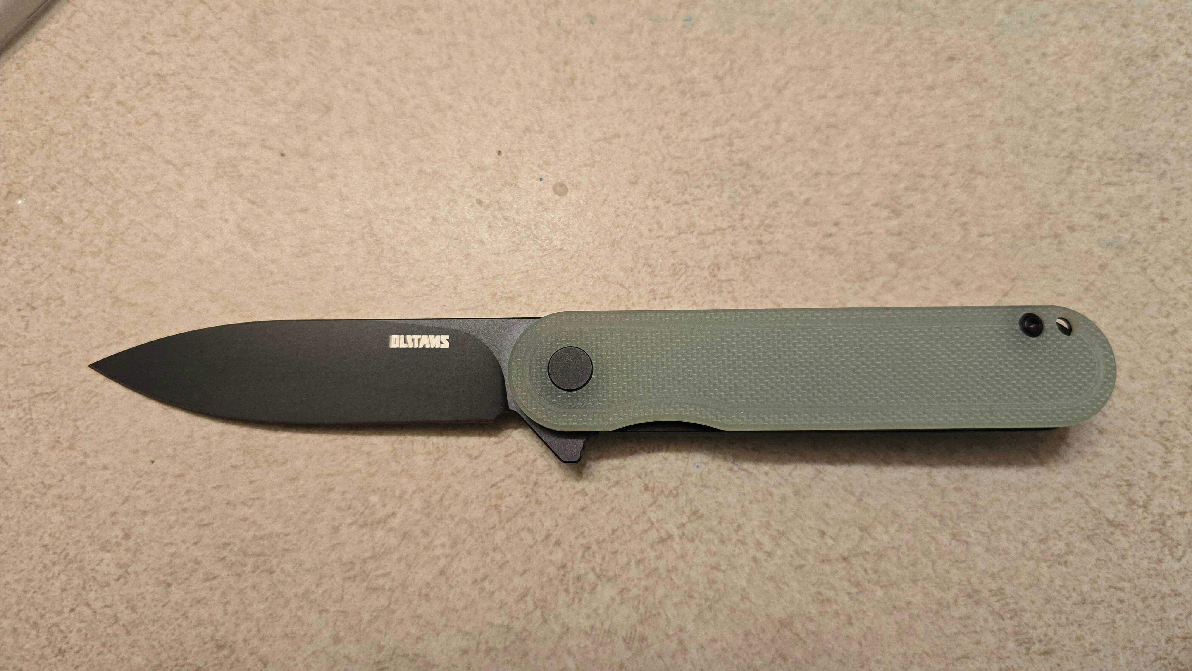 OLITANS Rocket G040---The material used for the blade is D2 steel, which is a very nice steel that can keep edge retention, and has high hardness. 2.75 inches sharp blade can provide you with an balance cutting experience in the outdoors.
