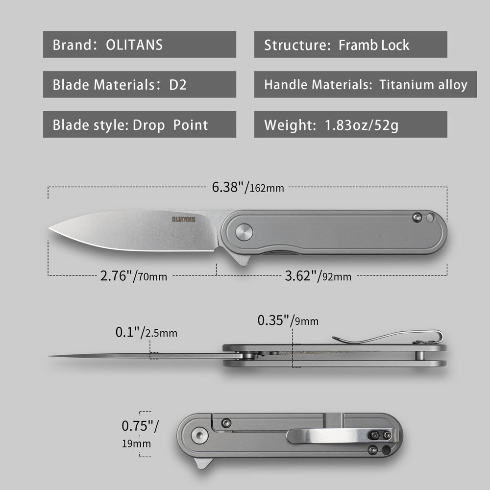 Pocket knife is very lightweight, measuring 6.4 inches in overall length, 2.76 inches in blade size, and weighing only 1.8oz
