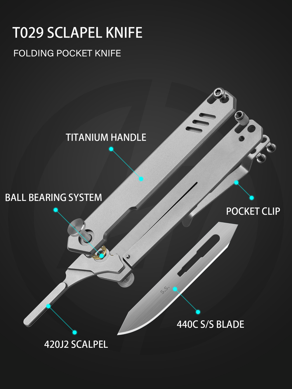 Folding Scalpel knife is equipped with 10pcs #60 scalpel blades, which can be firmly fixed on the knife holder when in use. Each blade has undergone a very precise heat treatment to ensure its excellent sharpness and can easily cut objects. When the blade becomes blunt, it can be easily removed. You can simply remove a new sharp blade and install it in. You never need to sharpen the blade. (Compatible with #22/23/24#60 scalpel blade)